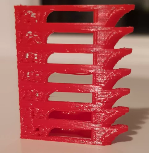 A parte alcune sbavature, probabilmente dovute piu' ad un problema di slicer che del filamento o della stampante, il pla red della basicfil si e' comportato molto bene